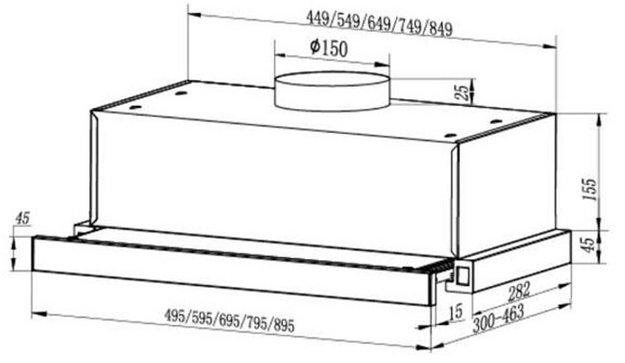 У многих встраиваемых моделей глубина может регулироваться, а рабочая всасывающая поверхность — увеличиваться благодаря выдвижному козырьку, но габариты корпуса такой вытяжки должны соответствовать размерам подвесного шкафа. Выбирать основные размеры вытяжки с соблюдением всех требований эффективности и безопасности работы следует также не в ущерб общему дизайну помещения.
