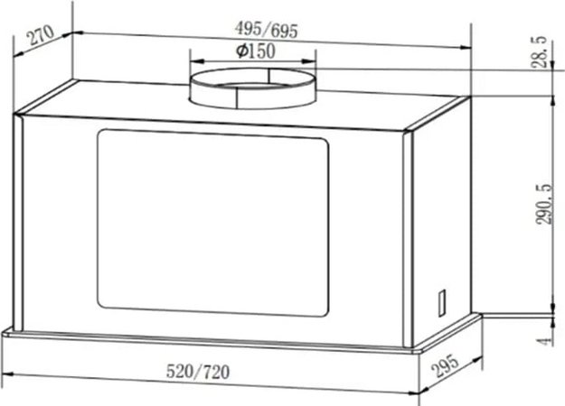 У многих встраиваемых моделей глубина может регулироваться, а рабочая всасывающая поверхность — увеличиваться благодаря выдвижному козырьку, но габариты корпуса такой вытяжки должны соответствовать размерам подвесного шкафа. Выбирать основные размеры вытяжки с соблюдением всех требований эффективности и безопасности работы следует также не в ущерб общему дизайну помещения.
