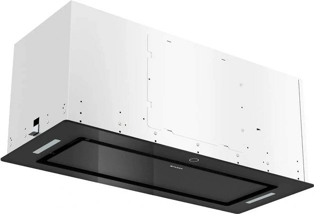 Вытяжка, встраиваемая в потолок, часто устанавливается над кухонным островом в просторной кухне и отличается достаточно высокой мощностью: она может работать как в режиме рециркуляции, так и в режиме отвода, так как воздуховод также скрыт в потолке. Вытяжки могут монтироваться в подвесной потолок либо устанавливаться в специальные многоярусные конструкции из гипсокартона непосредственно во время ремонта кухни. Для управления ими используется пульт ДУ.