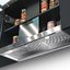 Вытяжка, встраиваемая в потолок, часто устанавливается над кухонным островом в просторной кухне и отличается достаточно высокой мощностью: она может работать как в режиме рециркуляции, так и в режиме отвода, так как воздуховод также скрыт в потолке. Вытяжки могут монтироваться в подвесной потолок либо устанавливаться в специальные многоярусные конструкции из гипсокартона непосредственно во время ремонта кухни. Для управления ими используется пульт ДУ.