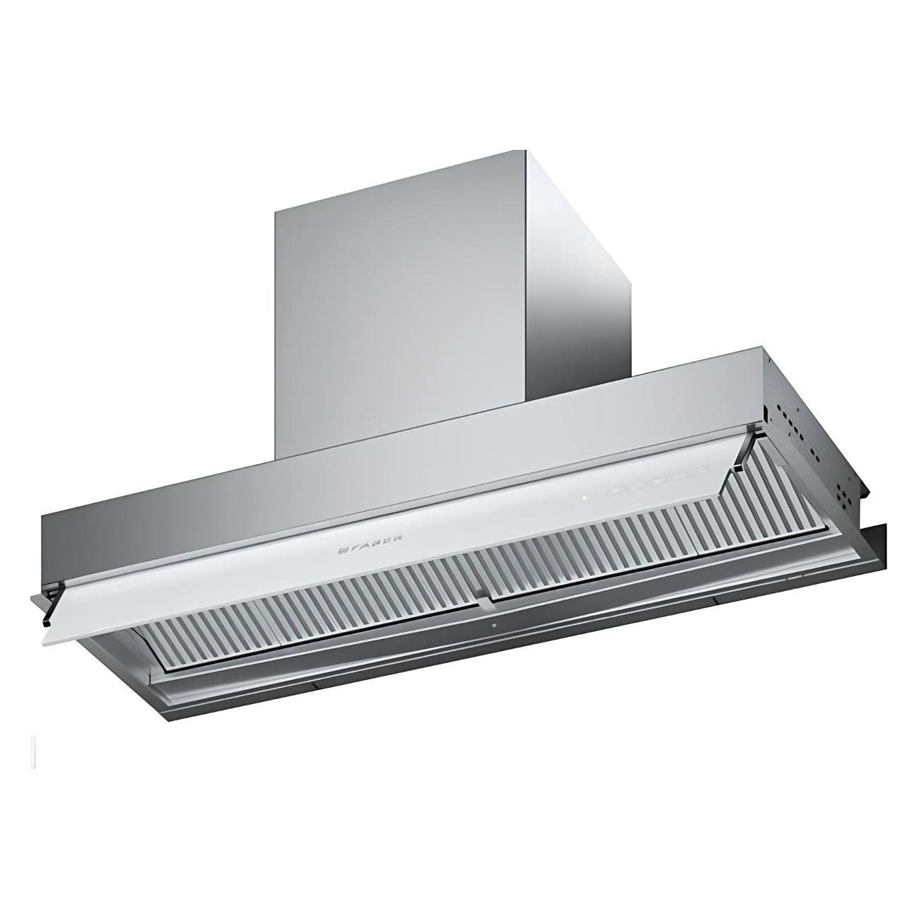 Несмотря на внушительные габариты по ширине, устройство работает с низким уровнем шума, не нарушая атмосферы уюта даже при длительной работе на повышенной мощности. Благодаря своей производительности и продуманной конструкции, вытяжка идеально подходит как для кухонь-гостиных, так и для островных зон готовки, где ценятся эффективность, надёжность и визуальная гармония.