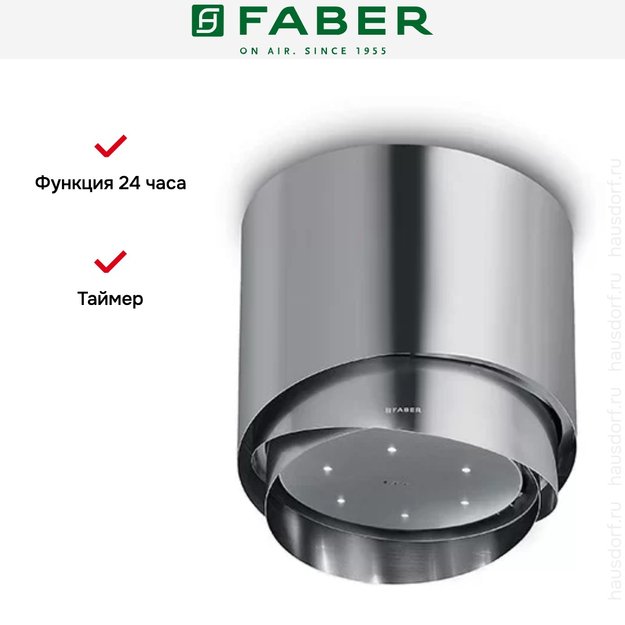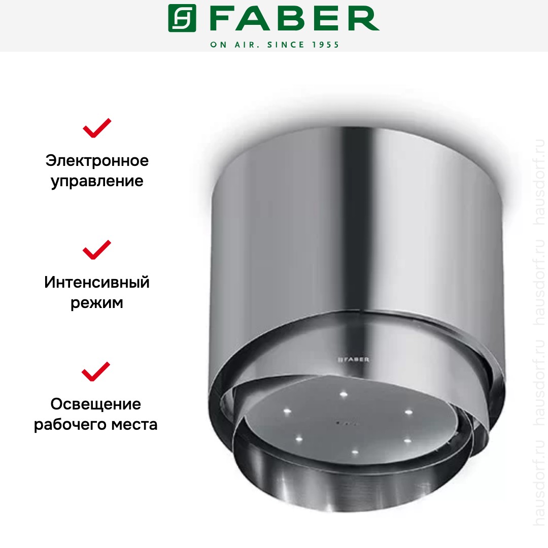 Итальянская компания Faber завоевала мировую известность благодаря своим оригинальным и надежным вытяжкам. История бренда началась в 1955 году: инженер А. Галасси с партнерами основал компанию по производству изделий из пластика — самого модного в то время материала. Оригинальную вытяжку фирма представила в 1958 году — она получила название по наименованию пластмассы Plexiglas.