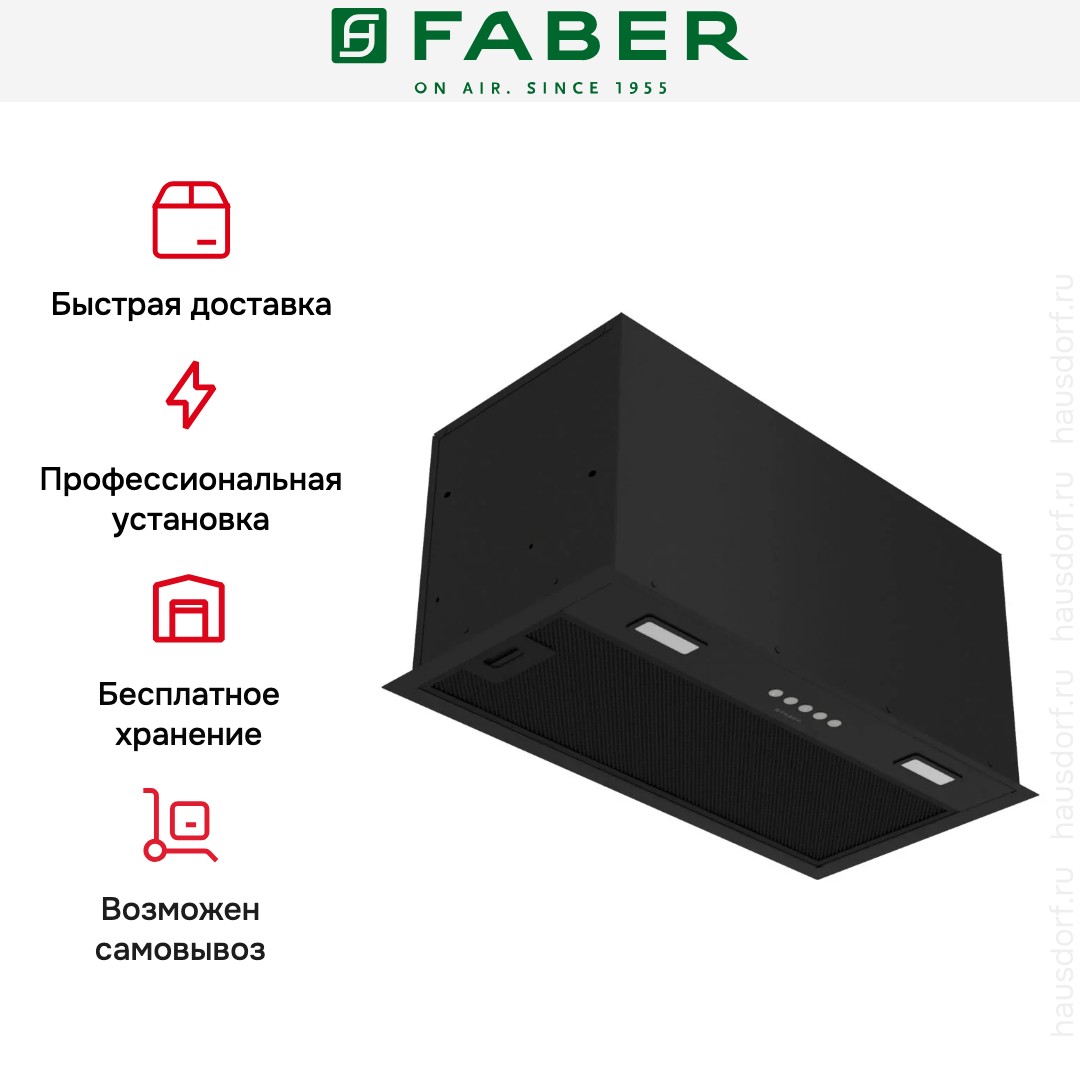 Итальянская компания Faber завоевала мировую известность благодаря своим оригинальным и надежным вытяжкам. История бренда началась в 1955 году: инженер А. Галасси с партнерами основал компанию по производству изделий из пластика — самого модного в то время материала. Оригинальную вытяжку фирма представила в 1958 году — она получила название по наименованию пластмассы Plexiglas.