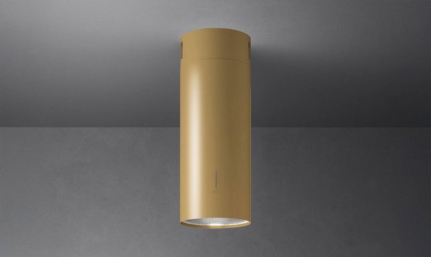 Данная вытяжка крепится к потолку — обычно над кухонным островом, где расположена рабочая зона. Обратите внимание на цветовые сочетания модели Falmec POLAR EVO IS GOLD 35, чтобы органично вписать ее в свою квартиру. Оттенок корпуса: золото. Благодаря лампочкам, которые расположены на нем, можно освещать плиту и столешницу рядом, чтобы готовить было еще проще и приятнее.