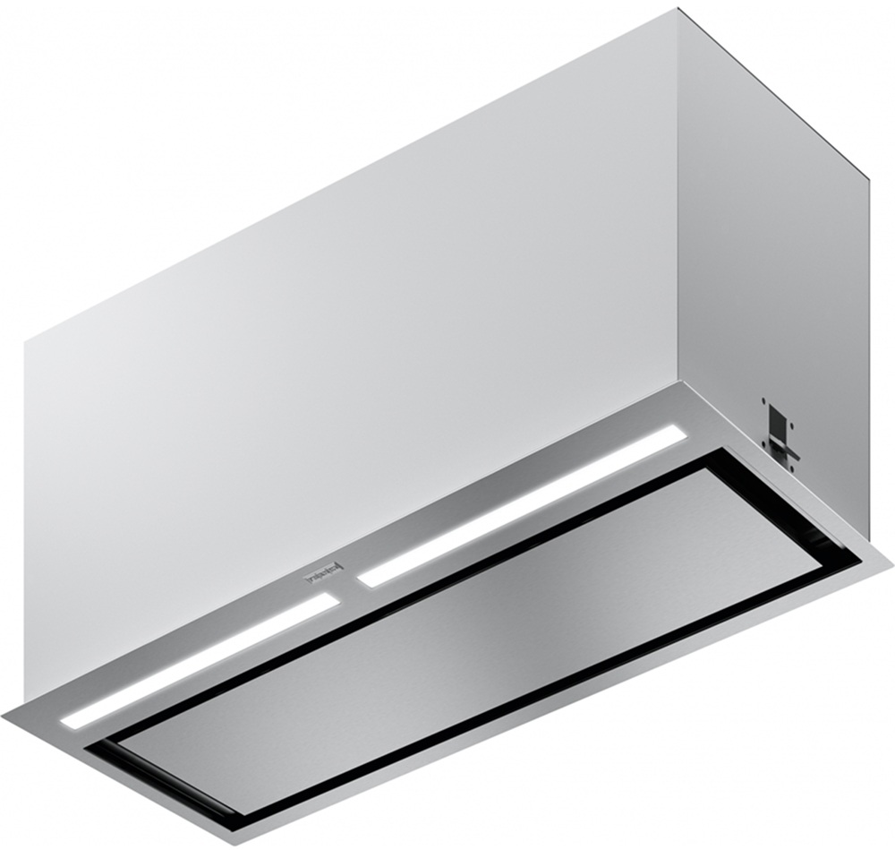 Вытяжка, встраиваемая в потолок, часто устанавливается над кухонным островом в просторной кухне и отличается достаточно высокой мощностью: она может работать как в режиме рециркуляции, так и в режиме отвода, так как воздуховод также скрыт в потолке. Вытяжки могут монтироваться в подвесной потолок либо устанавливаться в специальные многоярусные конструкции из гипсокартона непосредственно во время ремонта кухни. Для управления ими используется пульт ДУ.