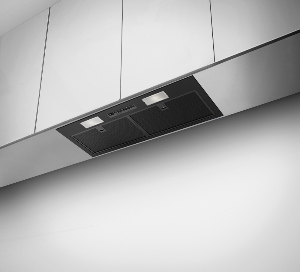 Встраивание вытяжки в шкаф — оптимальный вариант для малогабаритной кухни. Такие модели просты в установке, недороги, практически скрыты от глаз, их не нужно подбирать по внешнему виду, а также чем-то маскировать воздуховод. Уровень шума также снижается благодаря дополнительной звукоизоляции. Встроенные в шкаф модели могут дополняться выдвижной панелью, которая увеличивает площадь забора загрязненного воздуха. Иногда к встраиваемым относят также вытяжки, которые монтируются под подвесной шкаф, хотя их корпус остается на виду.