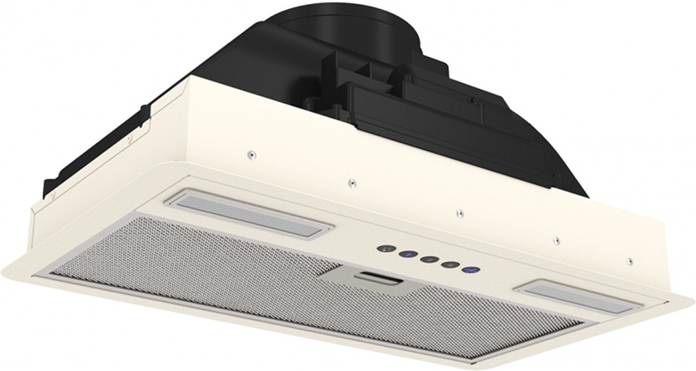 Вытяжка, встраиваемая в потолок, часто устанавливается над кухонным островом в просторной кухне и отличается достаточно высокой мощностью: она может работать как в режиме рециркуляции, так и в режиме отвода, так как воздуховод также скрыт в потолке. Вытяжки могут монтироваться в подвесной потолок либо устанавливаться в специальные многоярусные конструкции из гипсокартона непосредственно во время ремонта кухни. Для управления ими используется пульт ДУ.