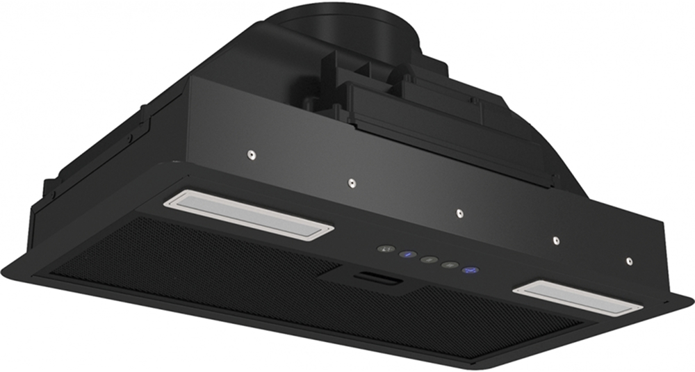 Вытяжка, встраиваемая в потолок, часто устанавливается над кухонным островом в просторной кухне и отличается достаточно высокой мощностью: она может работать как в режиме рециркуляции, так и в режиме отвода, так как воздуховод также скрыт в потолке. Вытяжки могут монтироваться в подвесной потолок либо устанавливаться в специальные многоярусные конструкции из гипсокартона непосредственно во время ремонта кухни. Для управления ими используется пульт ДУ.