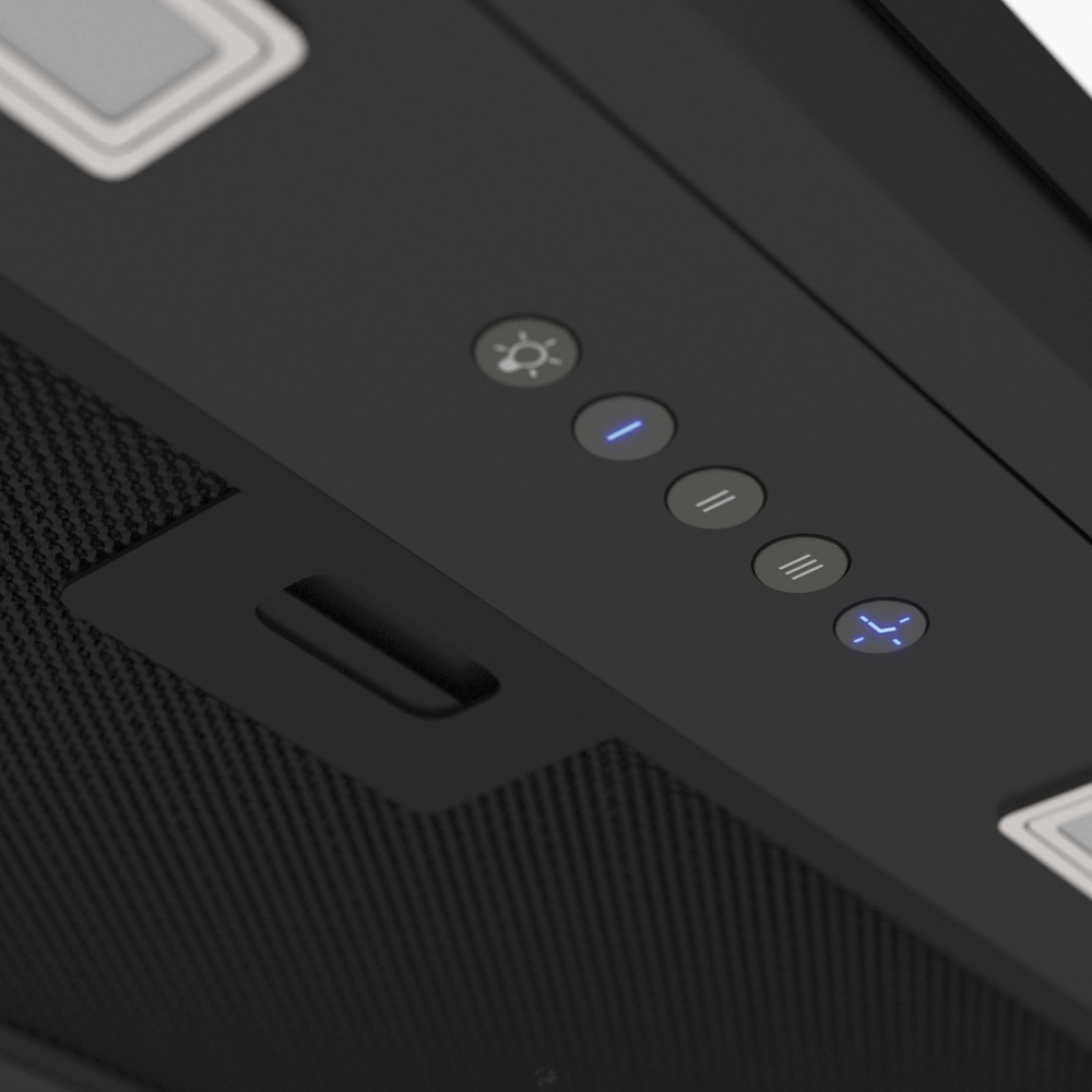 Встраиваемые и простые настенные модели, как правило, оснащаются боковой панелью управления, состоящей из нескольких кнопок. Их количество зависит от числа скоростей, наличия интенсивного режима и встроенного освещения. Боковое расположение панели управления делает вытяжку еще более незаметной.