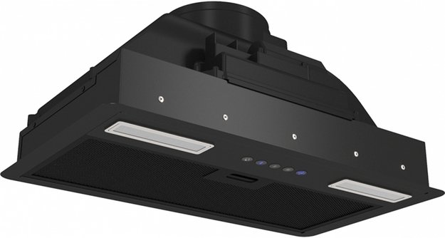 Вытяжки, встраиваемые в столешницу — эффективная инновация, которая подойдет для установки в кухне любой площади. Такие вытяжки размещаются за варочной поверхностью или рядом с ней. В отключенном состоянии всасывающая панель находится под столешницей, но после включения одной или нескольких конфорок она автоматически выдвигается при помощи специального лифтового механизма. Загрязненный воздух улавливается, не успевая распространиться по помещению. Когда вытяжка убрана, на виду остается только сенсорная панель управления. Недостатком подобных моделей является только сравнительно высокая цена.