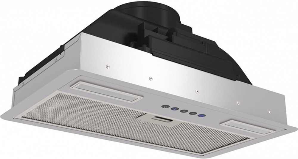 Вытяжка, встраиваемая в потолок, часто устанавливается над кухонным островом в просторной кухне и отличается достаточно высокой мощностью: она может работать как в режиме рециркуляции, так и в режиме отвода, так как воздуховод также скрыт в потолке. Вытяжки могут монтироваться в подвесной потолок либо устанавливаться в специальные многоярусные конструкции из гипсокартона непосредственно во время ремонта кухни. Для управления ими используется пульт ДУ.