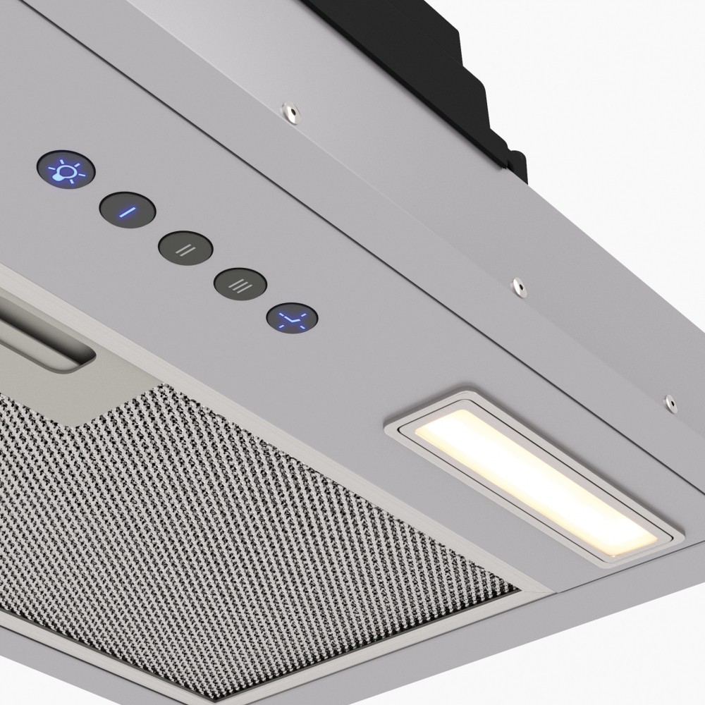 Встраивание вытяжки в шкаф — оптимальный вариант для малогабаритной кухни. Такие модели просты в установке, недороги, практически скрыты от глаз, их не нужно подбирать по внешнему виду, а также чем-то маскировать воздуховод. Уровень шума также снижается благодаря дополнительной звукоизоляции. Встроенные в шкаф модели могут дополняться выдвижной панелью, которая увеличивает площадь забора загрязненного воздуха. Иногда к встраиваемым относят также вытяжки, которые монтируются под подвесной шкаф, хотя их корпус остается на виду.