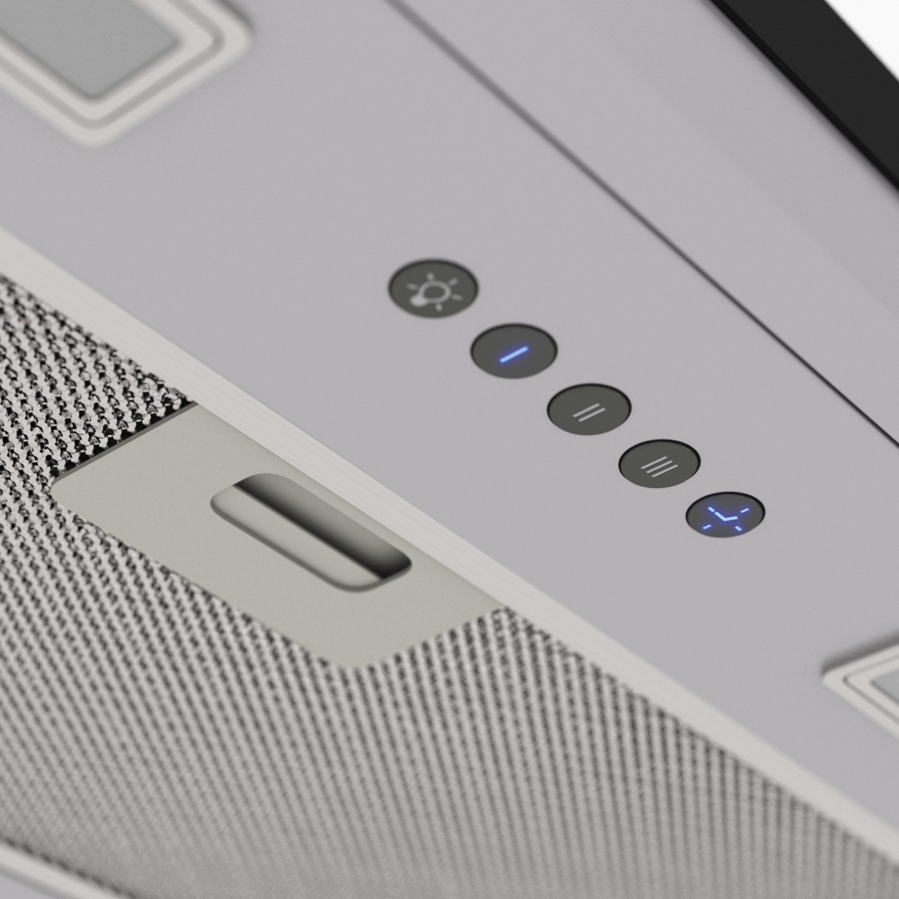 Встраиваемые и простые настенные модели, как правило, оснащаются боковой панелью управления, состоящей из нескольких кнопок. Их количество зависит от числа скоростей, наличия интенсивного режима и встроенного освещения. Боковое расположение панели управления делает вытяжку еще более незаметной.