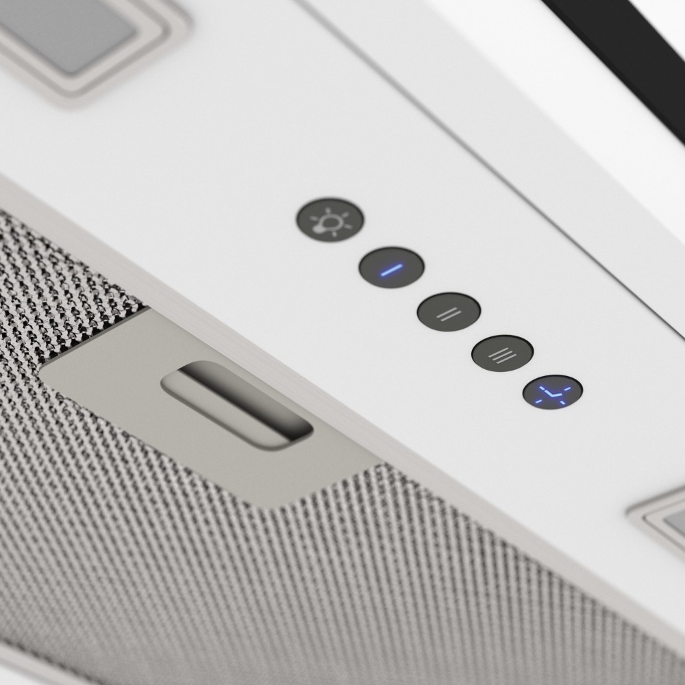 Встраиваемые и простые настенные модели, как правило, оснащаются боковой панелью управления, состоящей из нескольких кнопок. Их количество зависит от числа скоростей, наличия интенсивного режима и встроенного освещения. Боковое расположение панели управления делает вытяжку еще более незаметной.