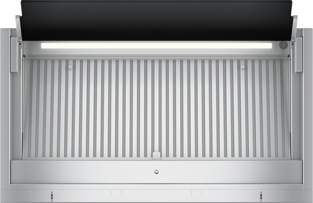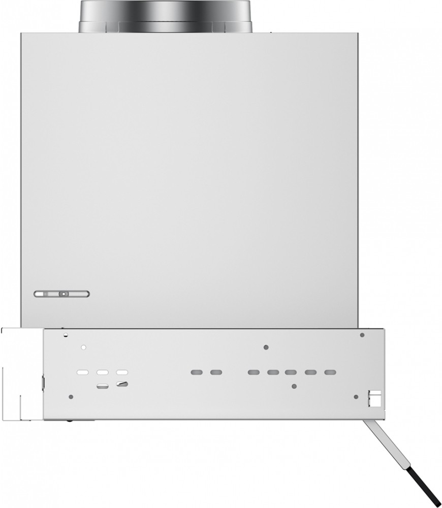 Вытяжки, встраиваемые в столешницу — эффективная инновация, которая подойдет для установки в кухне любой площади. Такие вытяжки размещаются за варочной поверхностью или рядом с ней. В отключенном состоянии всасывающая панель находится под столешницей, но после включения одной или нескольких конфорок она автоматически выдвигается при помощи специального лифтового механизма. Загрязненный воздух улавливается, не успевая распространиться по помещению. Когда вытяжка убрана, на виду остается только сенсорная панель управления. Недостатком подобных моделей является только сравнительно высокая цена.