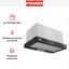 Дизайн ориентирован на встроенный монтаж в шкаф над плитой и экономию пространства. Компактные габариты 2949.531.5-47.8 см позволяют легко вписать корпус в стандартную кухонную нишу, а выдвижная стеклянная панель увеличивает зону захвата пара при необходимости. Черный стеклянный экран служит и эстетической, и практической функциям: он защищает внутренний механизм и удобно очищается. Небольшой вес в 7 кг облегчает установку и обслуживание.