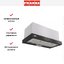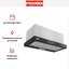 Функции управления реализованы через фронтальную сенсорную панель с электронными элементами, что гарантирует быструю и точную настройку даже влажными руками. Встроенный таймер и функция автоматического отключения дают возможность не следить за вытяжкой постоянно — она завершит работу по заданному времени. Рабочее освещение представлено светодиодом мощностью 2 Вт. Алюминиевый кассетный фильтр задерживает крупные частицы жира и легко снимается для мойки.