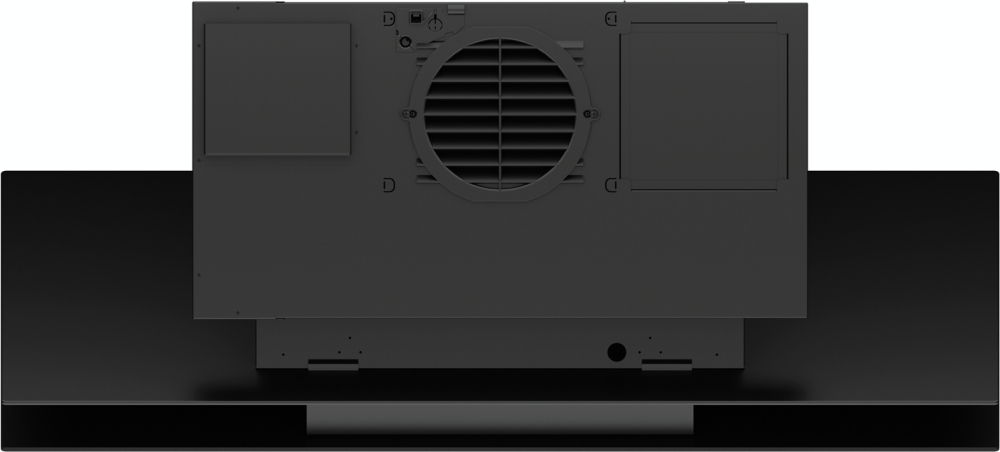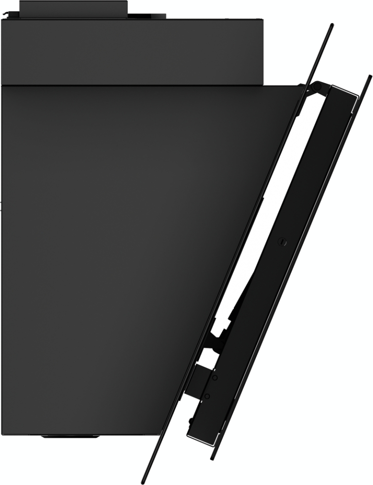 Воздух всасывается по периметру вытяжки через узкие щели. Он собирается в потоки, которые направляются прямо к фильтрам внутри, не рассеивается на кухне. Благодаря этой технологией вытяжку можно сделать компактнее и энергоэффективнее.