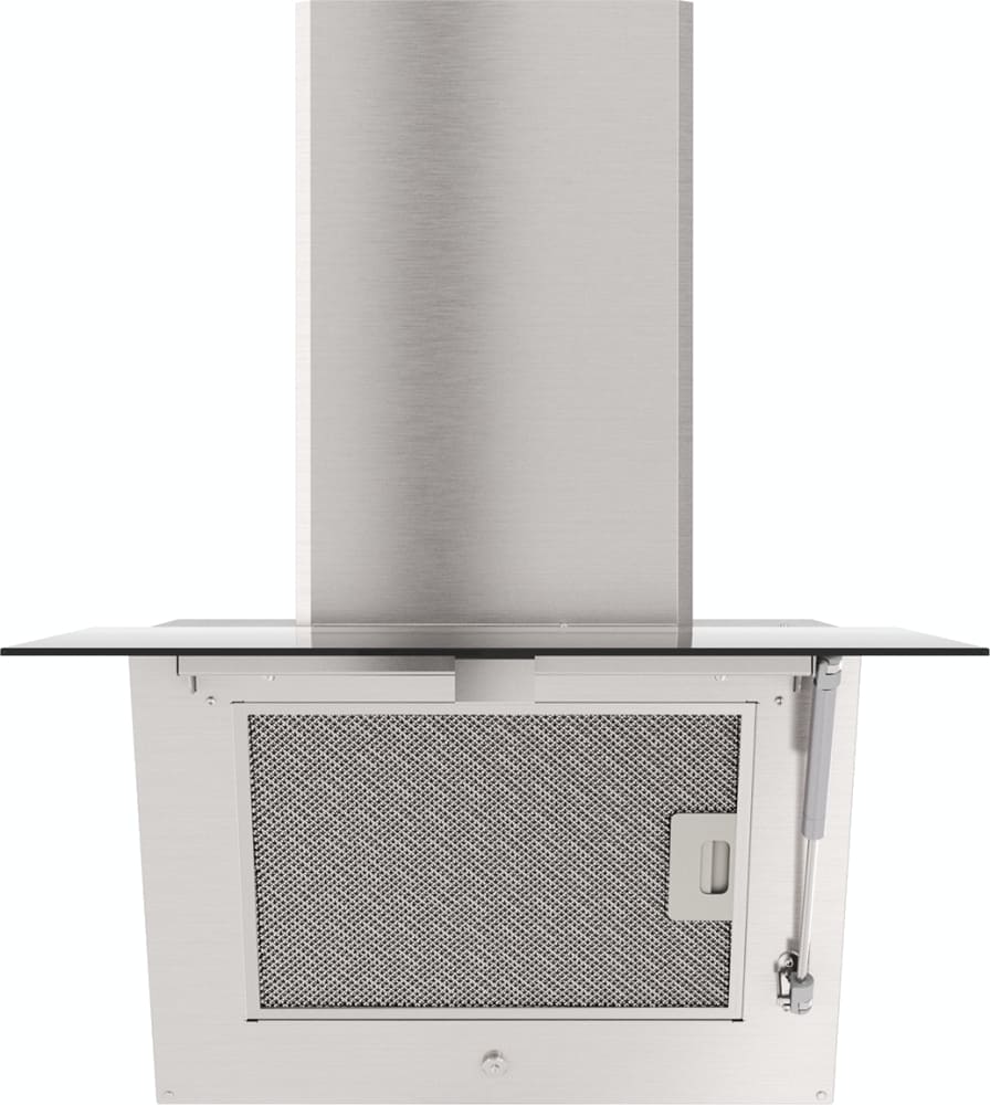 Воздух всасывается по периметру вытяжки через узкие щели. Он собирается в потоки, которые направляются прямо к фильтрам внутри, не рассеивается на кухне. Благодаря этой технологией вытяжку можно сделать компактнее и энергоэффективнее.