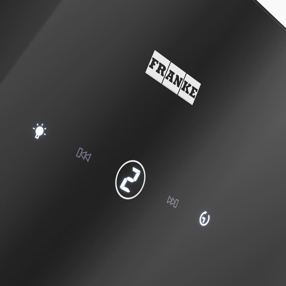 Сенсорная электронная панель управления оснащается цифровым дисплеем, на котором высвечивается основная информация о текущем состоянии устройства. Для выбора скорости всасывания в таких вытяжках будет достаточно одной кнопки: ее последовательное нажатие позволяет изменять ступени мощности, а их значение появляется на дисплее.
