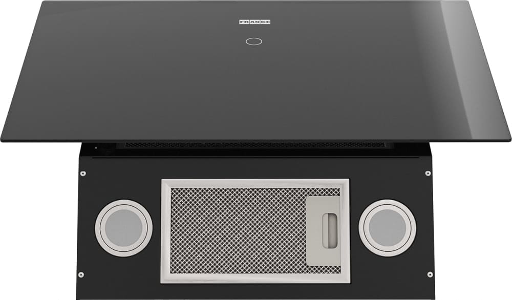 Воздух всасывается по периметру вытяжки через узкие щели. Он собирается в потоки, которые направляются прямо к фильтрам внутри, не рассеивается на кухне. Благодаря этой технологией вытяжку можно сделать компактнее и энергоэффективнее.