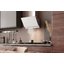 Выглядит как наклонная вытяжка белого цвета в сочетании нержавеющей стали и стекла: с плавной, чуть скошенной панелью и фронтальной сенсорной панелью управления. Ширина 59 см и глубина 43,2 см делают её компактной для типовой кухонной зоны, а высота регулируется от 73,2 до 120 см, что позволяет подстроить корпус по месту установки. Дизайн Maris подчёркивает строгие линии и светлую отделку — прибор привлекает внимание минималистичной формой без излишеств.
