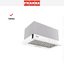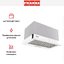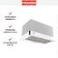 Вытяжка выглядит стильно и сдержанно: корпус белого цвета с комбинированной поверхностью из нержавеющей стали и стекла. Передняя панель выполнена со стеклянным экраном и выдвижной секцией, которая при необходимости увеличивает захват паров и запахов. Форма и пропорции (29×49.5×31.5 см) рассчитаны на установку внутри кухонного шкафа, сохраняя единую линию фасада.