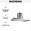 Для удобства пользователя следует выбирать вытяжку так, чтобы глубина даже самого большого купола не превышала глубину столешницы. У большинства современных купольных моделей глубина точно равна ширине, поскольку и стандартные варочные поверхности чаще всего имеют квадратную форму. Это значит, что вытяжка должна располагаться точно над поверхностью плиты, так, чтобы их оси совпадали. Стандартные размеры глубины таким образом могут составлять 30, 45, 50, 60, 80, 90, 100, 120 см.