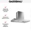 Для удобства пользователя следует выбирать вытяжку так, чтобы глубина даже самого большого купола не превышала глубину столешницы. У большинства современных купольных моделей глубина точно равна ширине, поскольку и стандартные варочные поверхности чаще всего имеют квадратную форму. Это значит, что вытяжка должна располагаться точно над поверхностью плиты, так, чтобы их оси совпадали. Стандартные размеры глубины таким образом могут составлять 30, 45, 50, 60, 80, 90, 100, 120 см.