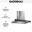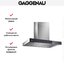 Т-образный дизайн распространен среди производителей премиальных и бюджетных вытяжек. Его легко реализовать, такая модель впишется в большинство кухонь и гарантировано покроет все рабочее пространство над варочной панелью. Часто выполняется из нержавеющей стали и используется в лофтах, также есть варианты с фронтальной панелью из стекла.