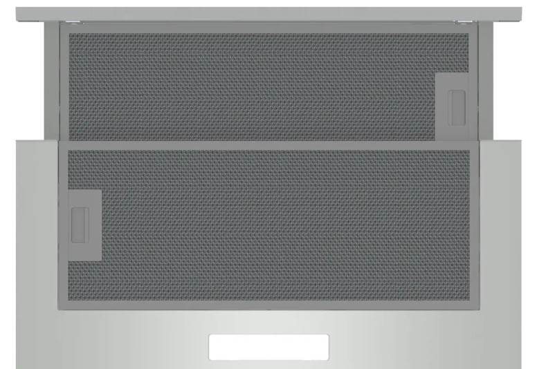 В вытяжках, интегрированных в варочную поверхность и работающих в режиме рециркуляции, панель выдвигается при включении зоны нагрева автоматически. В закрытом же состоянии видны только сенсорные управляющие элементы, которые находятся вровень с варочной поверхностью.