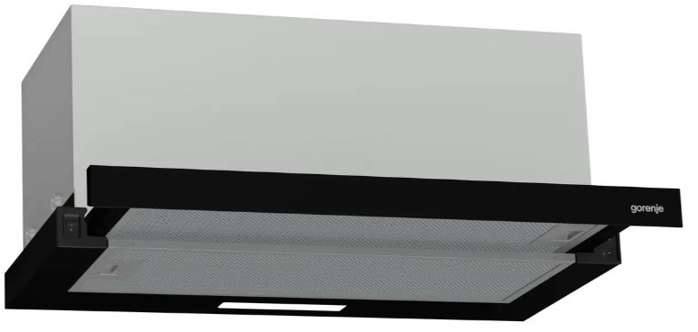 Встраиваемая вытяжка — выбор тех, кто хочет максимально задекорировать технику, или владельцев маленькой кухни. Тип встраивания: в шкаф. Обратите внимание на цветовые сочетания модели Gorenje TH60E6XB, чтобы органично вписать ее в свою квартиру. Оттенок корпуса: черный. Благодаря лампочкам, которые расположены на нем, можно освещать плиту и столешницу рядом, чтобы готовить было еще проще и приятнее. Фишка этой техники — выдвижная панель.