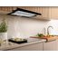 В вытяжках, интегрированных в варочную поверхность и работающих в режиме рециркуляции, панель выдвигается при включении зоны нагрева автоматически. В закрытом же состоянии видны только сенсорные управляющие элементы, которые находятся вровень с варочной поверхностью.