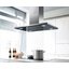 Воздух всасывается по периметру вытяжки через узкие щели. Он собирается в потоки, которые направляются прямо к фильтрам внутри, не рассеивается на кухне. Благодаря этой технологией вытяжку можно сделать компактнее и энергоэффективнее.