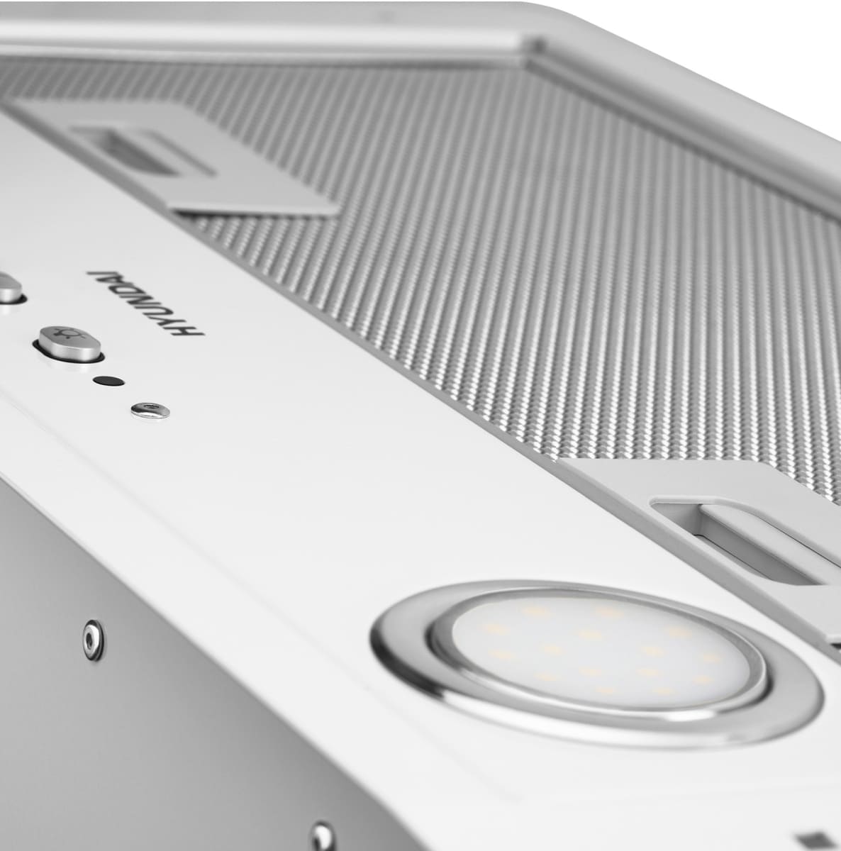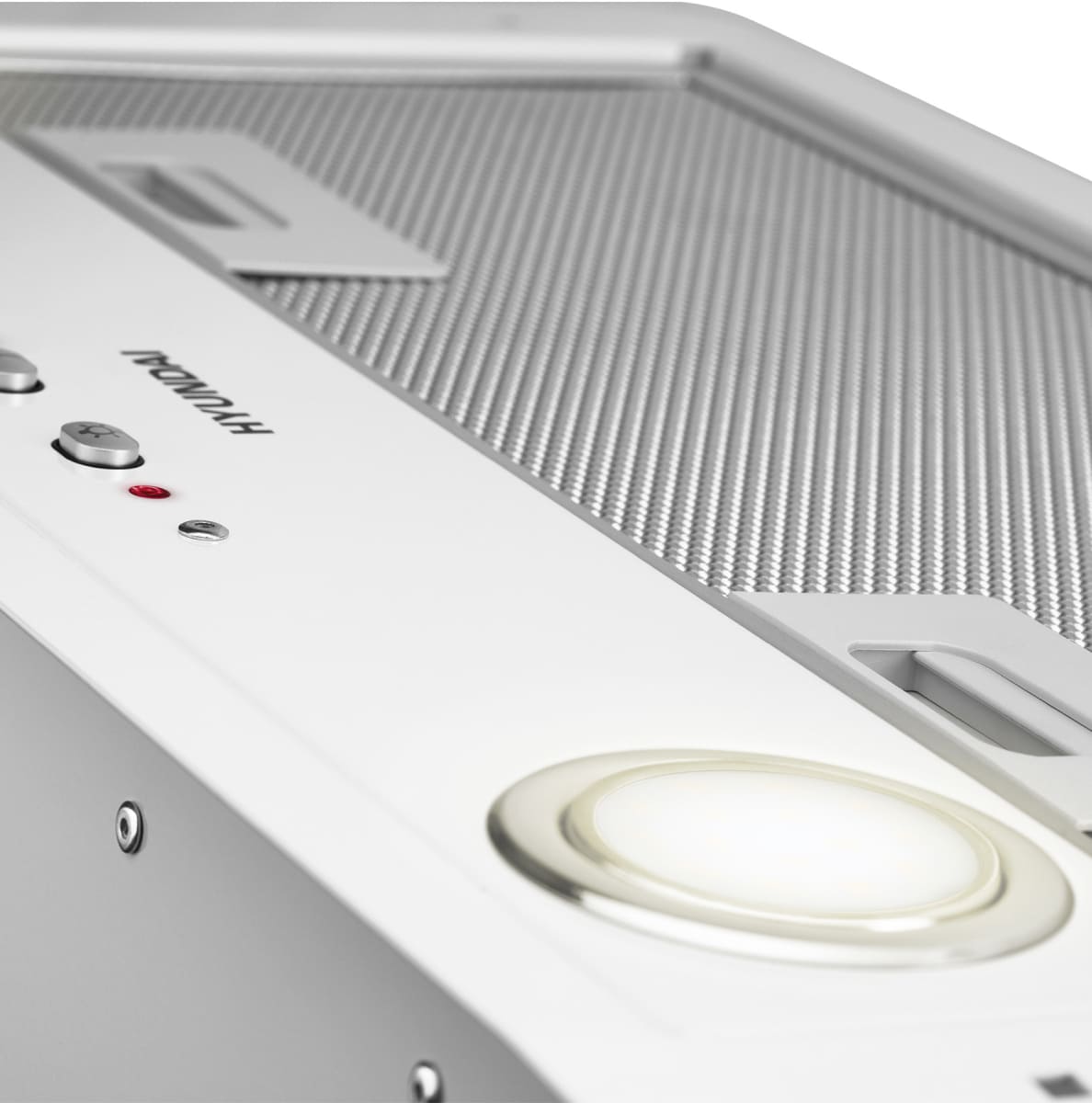 Встраиваемая вытяжка — выбор тех, кто хочет максимально задекорировать технику, или владельцев маленькой кухни. Тип встраивания: в шкаф. Обратите внимание на цветовые сочетания модели Hyundai HBB 6035 W, чтобы органично вписать ее в свою квартиру. Оттенок корпуса: белый. Благодаря лампочкам, которые расположены на нем, можно освещать плиту и столешницу рядом, чтобы готовить было еще проще и приятнее.