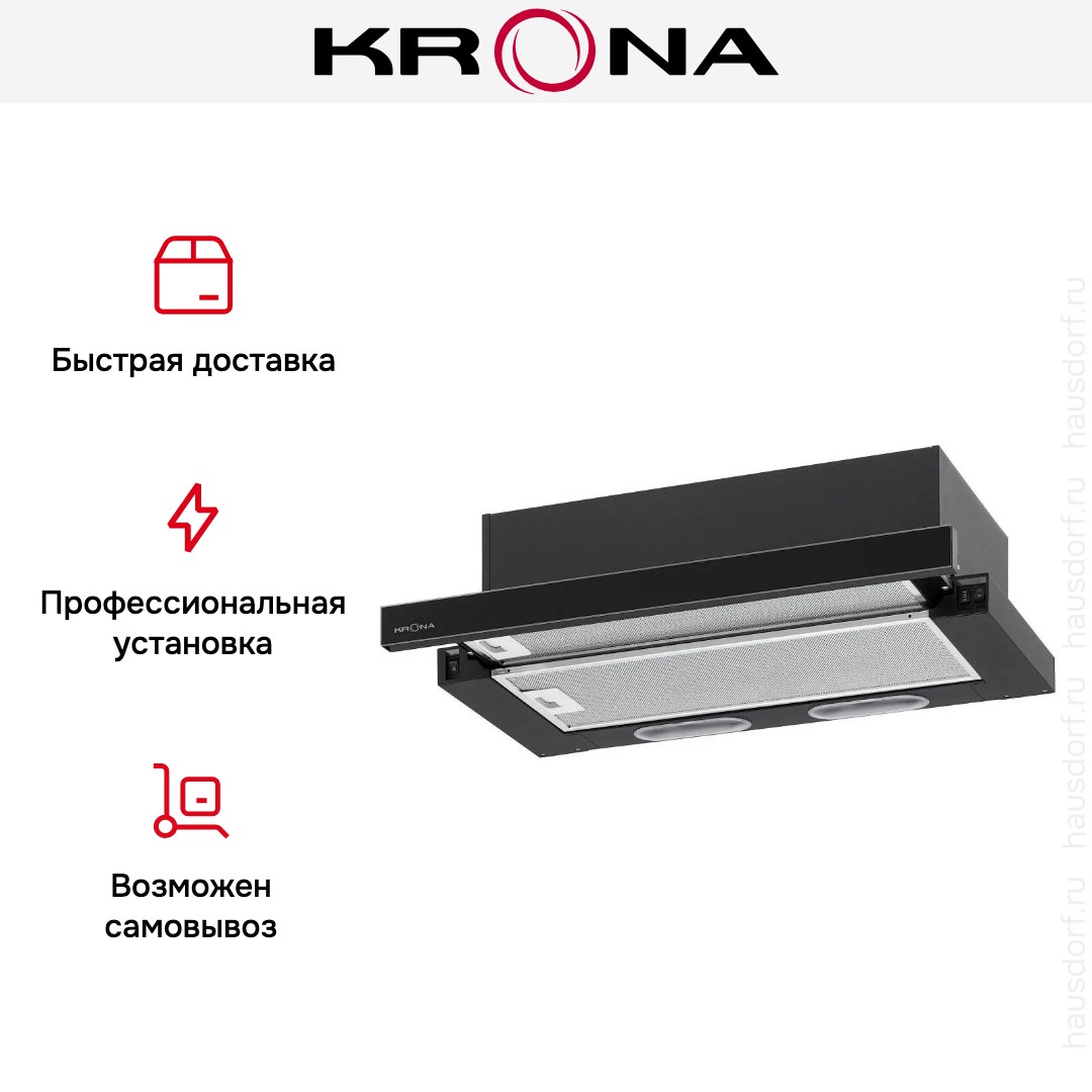 Встраиваемая вытяжка — выбор тех, кто хочет максимально задекорировать технику, или владельцев маленькой кухни. Тип встраивания: в шкаф. Обратите внимание на цветовые сочетания модели KRONA KAMILLA 600 2DN BL GLASS, чтобы органично вписать ее в свою квартиру. Оттенок корпуса: черный. Благодаря лампочкам, которые расположены на нем, можно освещать плиту и столешницу рядом, чтобы готовить было еще проще и приятнее. Фишка этой техники — выдвижная панель.
