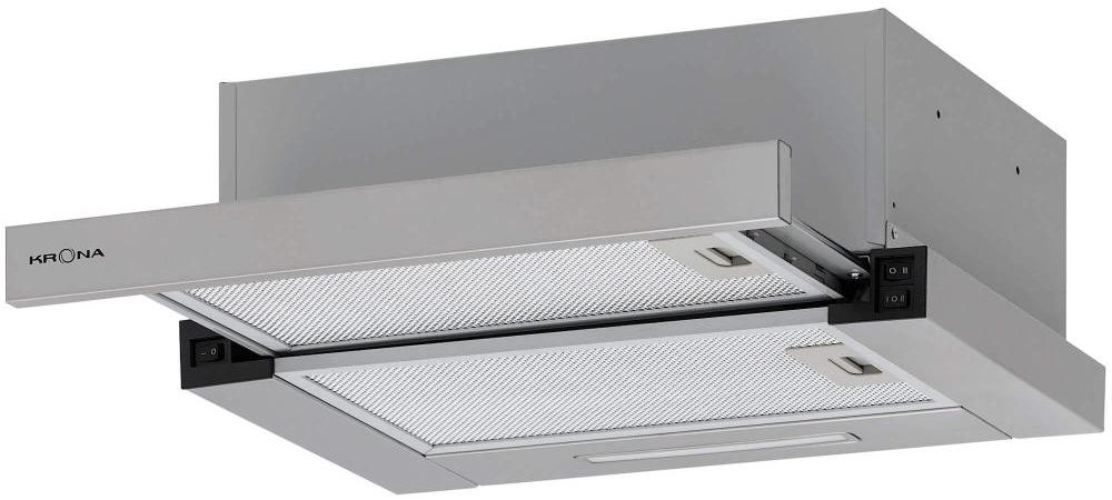 Встраиваемая вытяжка — выбор тех, кто хочет максимально задекорировать технику, или владельцев маленькой кухни. Тип встраивания: в шкаф. Обратите внимание на цветовые сочетания модели KRONA KAMILLA F 450 inox, чтобы органично вписать ее в свою квартиру. Оттенок корпуса: нержавеющая сталь. Благодаря лампочкам, которые расположены на нем, можно освещать плиту и столешницу рядом, чтобы готовить было еще проще и приятнее. Фишка этой техники — выдвижная панель.