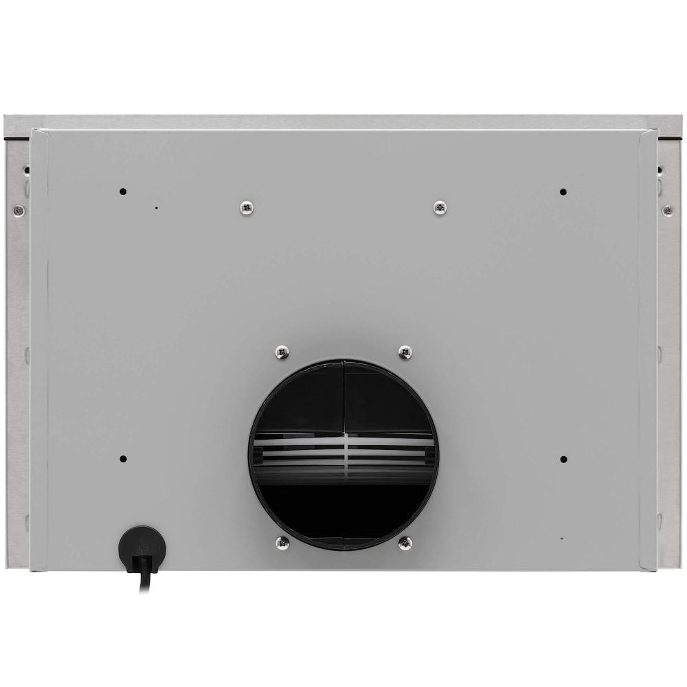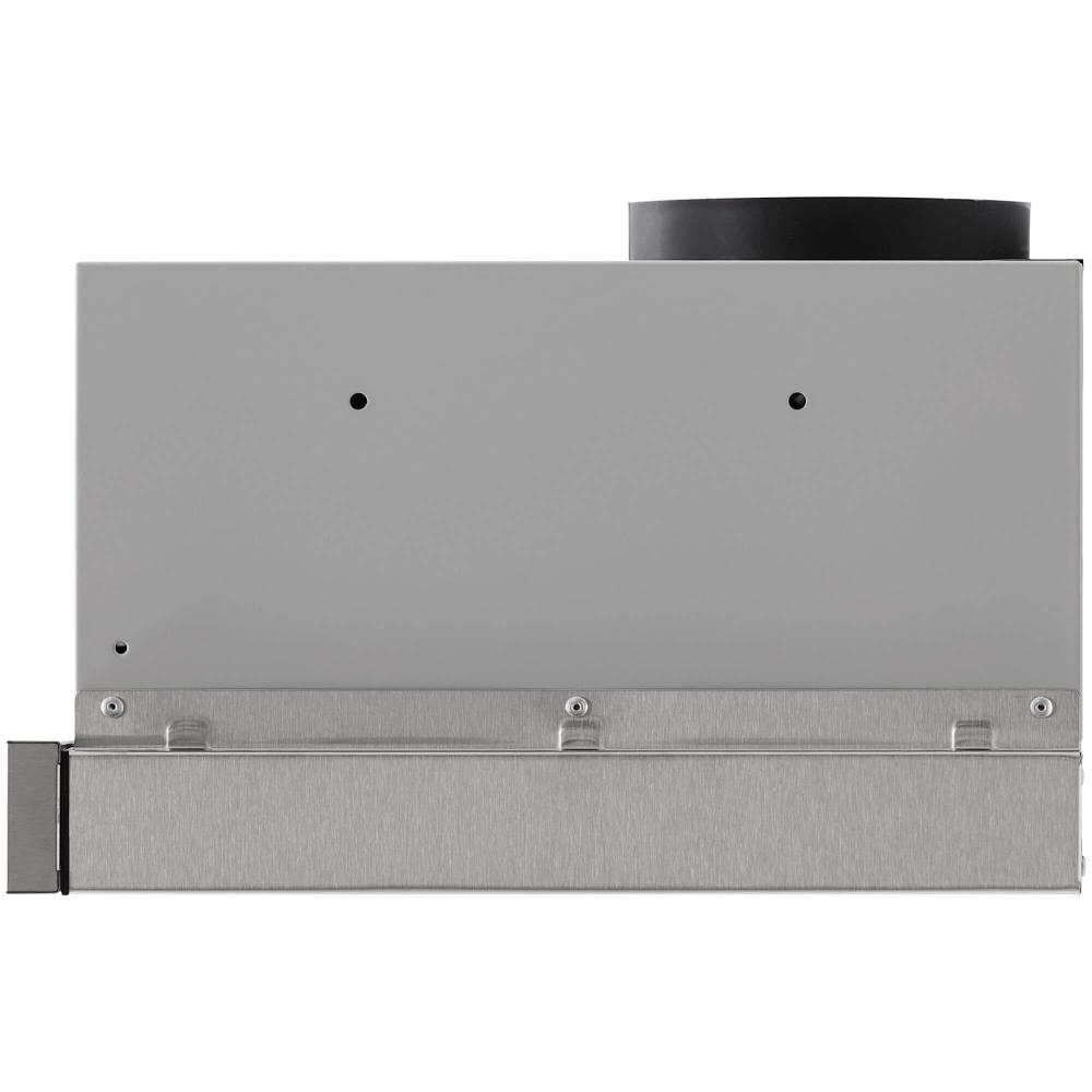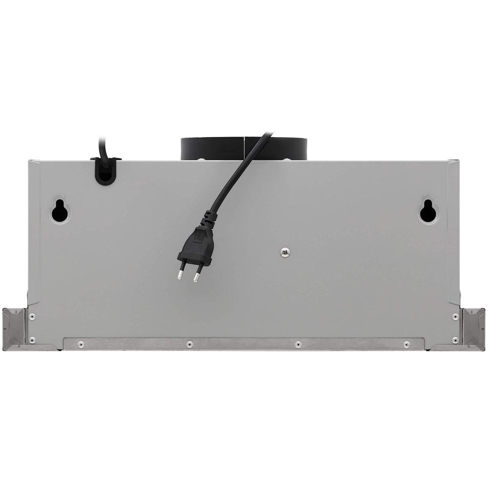 Вытяжка работает в режимах отвода и циркуляции, поэтому загрязнения удаляются из комнаты и перенаправляются в воздуховод, при этом можно очистить воздух и использовать повторно за счет возвращения его в помещение. Количество скоростей в этой модели: 3 шт. При этом максимальная производительность составляет 600 куб.м./ч. Уровень шума при полной загруженности — 55 дБ.