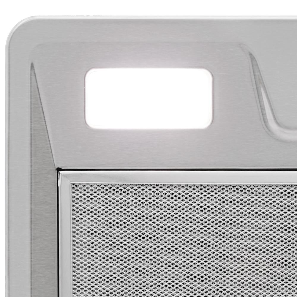Встроенное освещение — функция, которая присутствует практически во всех современных вытяжках. Центрального освещения часто недостаточно для хорошего обзора рабочей зоны, особенно если над ней установлен подвесной шкаф. Интегрированные в вытяжку лампы позволяют готовить с комфортом, не напрягая зрение, их можно включать независимо от использования самой вытяжки.