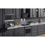 Воздух всасывается по периметру вытяжки через узкие щели. Он собирается в потоки, которые направляются прямо к фильтрам внутри, не рассеивается на кухне. Благодаря этой технологией вытяжку можно сделать компактнее и энергоэффективнее.