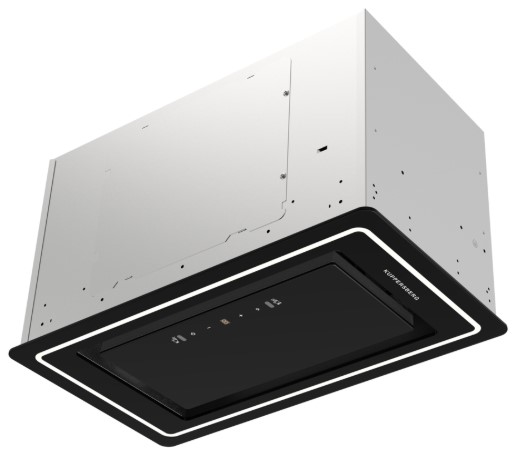 Вытяжка, встраиваемая в потолок, часто устанавливается над кухонным островом в просторной кухне и отличается достаточно высокой мощностью: она может работать как в режиме рециркуляции, так и в режиме отвода, так как воздуховод также скрыт в потолке. Вытяжки могут монтироваться в подвесной потолок либо устанавливаться в специальные многоярусные конструкции из гипсокартона непосредственно во время ремонта кухни. Для управления ими используется пульт ДУ.