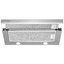 Можно выделить два основных вида вытяжек с выдвижной панелью. В вытяжках, встраиваемых в подвесной шкаф, выдвижная панель необходима, так как размеры таких устройств определяются размерами самого шкафа. В закрытом состоянии глубина вытяжки может быть меньше глубины варочной поверхности. Телескопическая выдвижная панель, которая устанавливается преимущественно в устройствах, работающих в режиме отвода, гарантирует полный захват воздуха, загрязненного каплями жира, частицами сажи, испарениями. Панель можно выдвинуть как нажатием на кнопку, так и потянув за ее переднюю часть. В некоторых моделях при подобном выдвижении одновременно включается подсветка. Когда же панель убрана, вытяжка становится практически незаметной — такой вариант лучше всего подходит для небольшой кухни.