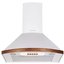 Kuppersberg BONA 60 W Bronze – это купольная вытяжка элегантного белого цвета с бронзовой окантовкой по краю. Впишется в любой интерьер от классического до современных направлений, подойдет таким стилям, как «шале», «прованс», «неоклассицизм» и многие другие. Она работает в режимах отвода и рециркуляции воздуха, имеет три скорости и обладает оптимальной мощностью очищения в 650 кубометров в час. И даже на третьей скорости имеет уровень шума 58 Дб. На самой низкой скорости, достаточной для очищения кухни, этот уровень составит всего 42 Дб.