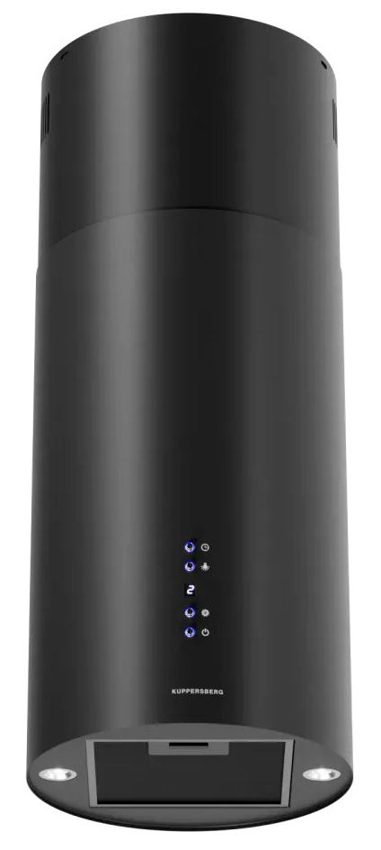 Данная вытяжка крепится к потолку — обычно над кухонным островом, где расположена рабочая зона. Обратите внимание на цветовые сочетания модели Kuppersberg TUBA 35 B, чтобы органично вписать ее в свою квартиру. Оттенок корпуса: черный. Благодаря лампочкам, которые расположены на нем, можно освещать плиту и столешницу рядом, чтобы готовить было еще проще и приятнее.