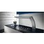 Вытяжки, встраиваемые в столешницу — эффективная инновация, которая подойдет для установки в кухне любой площади. Такие вытяжки размещаются за варочной поверхностью или рядом с ней. В отключенном состоянии всасывающая панель находится под столешницей, но после включения одной или нескольких конфорок она автоматически выдвигается при помощи специального лифтового механизма. Загрязненный воздух улавливается, не успевая распространиться по помещению. Когда вытяжка убрана, на виду остается только сенсорная панель управления. Недостатком подобных моделей является только сравнительно высокая цена.