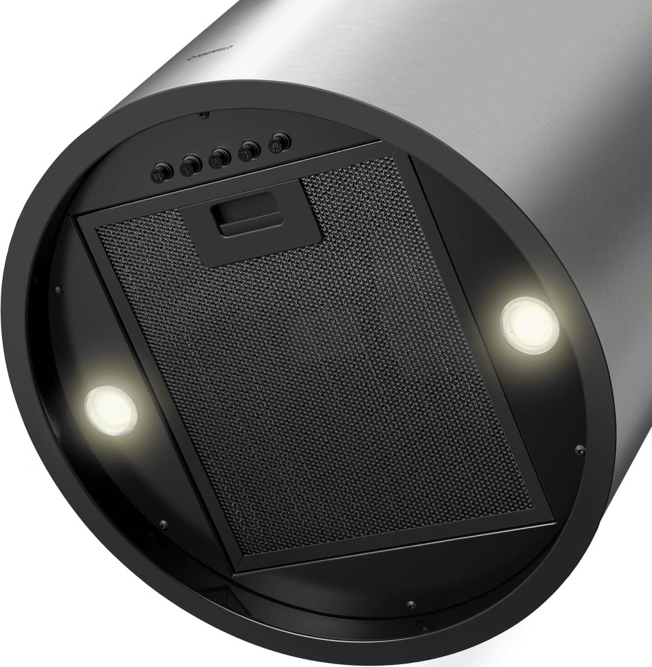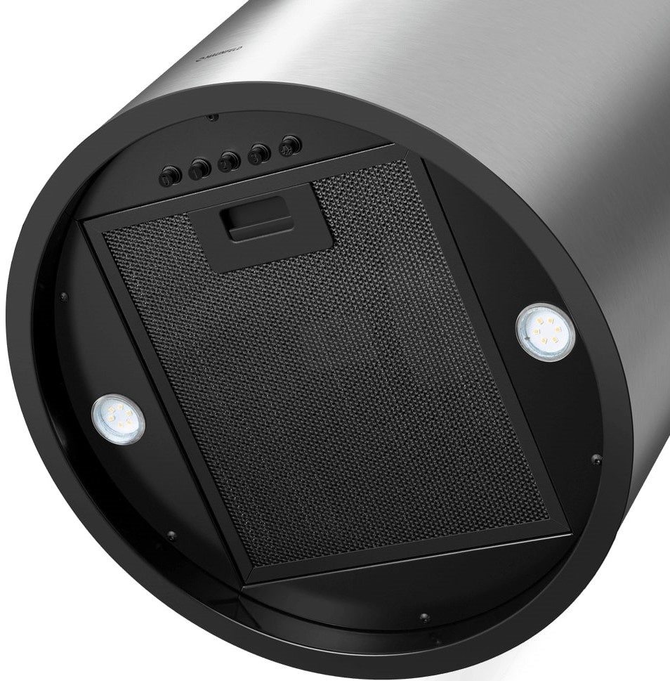 Крепление вытяжки к стене — стандартное для многих моделей, ими удобно управлять, так как кнопки находятся на расстоянии вытянутой руки. Обратите внимание на цветовые сочетания модели Maunfeld DRUM Wall 35 inox, чтобы органично вписать ее в свою квартиру. Оттенок корпуса: нержавеющая сталь. Благодаря лампочкам, которые расположены на нем, можно освещать плиту и столешницу рядом, чтобы готовить было еще проще и приятнее.