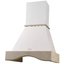 Еще один универсальный цвет — белый, он особенно хорошо подходит для небольших кухонь, так как зрительно способен расширить пространство. На белом фона меньше заметны капли воды и даже частицы жира. В классическом или античном белом выполняются купольные и каминные вытяжки, угловые и встраиваемые модели. Светлые кремовые тона, оттенок слоновой кости — наиболее распространенный вариант для больших вытяжек с окантовкой из натурального дерева.