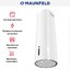 Островная вытяжка Maunfeld имеет цилиндрический корпус белого цвета, который сочетается со светлой мебелью, но также отлично смотрится в интерьере, построенном на контрасте. Обратите внимание на эту модель, если у вас квартира-студия или достаточно просторная кухня с выделенным островом для приготовления. Мощности этой вытяжки хватит, чтобы быстро избавить от запахов пространство до 20 квадратных метров.