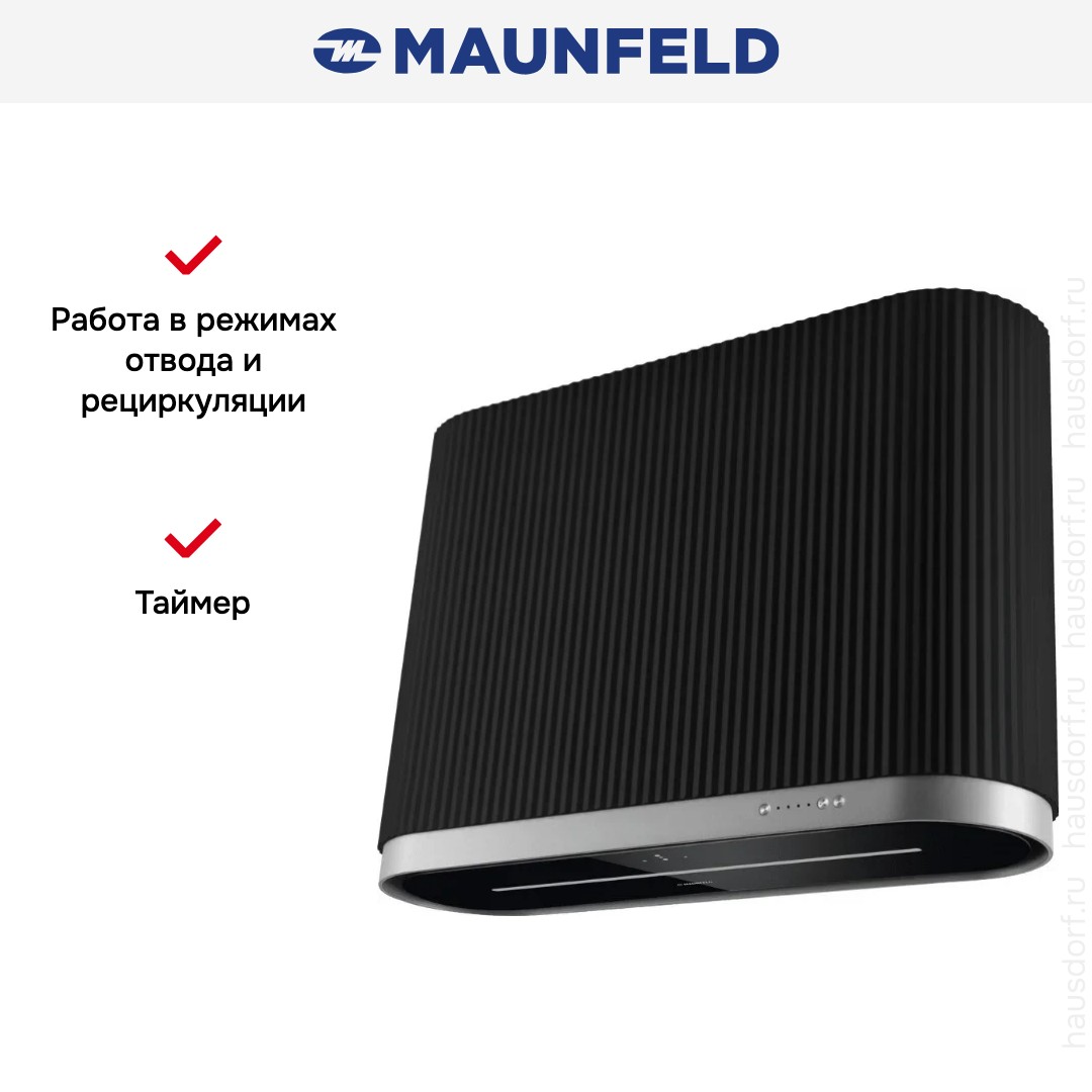 Крепление вытяжки к стене — стандартное для многих моделей, ими удобно управлять, так как кнопки находятся на расстоянии вытянутой руки. Обратите внимание на цветовые сочетания модели Maunfeld MURANO 80 Black/Anthracite, чтобы органично вписать ее в свою квартиру. Оттенок корпуса: черный.
