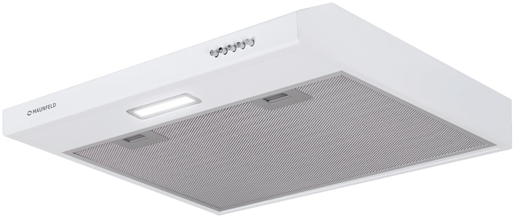 Крепление вытяжки к стене — стандартное для многих моделей, ими удобно управлять, так как кнопки находятся на расстоянии вытянутой руки. Обратите внимание на цветовые сочетания модели Maunfeld Tail Push 60 White, чтобы органично вписать ее в свою квартиру. Оттенок корпуса: белый. Благодаря лампочкам, которые расположены на нем, можно освещать плиту и столешницу рядом, чтобы готовить было еще проще и приятнее.
